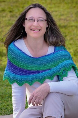 The shawl is knit from the bottom up in a ridged stockinette pattern. The crescent is formed by working the body in short rows, using decreases to bridge the turning points, so there are no wrapped stitches to deal with.