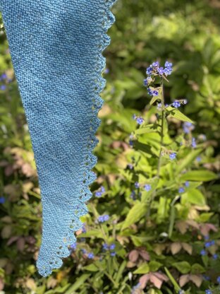 noli me oblivisci is an asymmetric, garter stitch shawl with a simple lace edging that goes around the outside edge of the shawl.