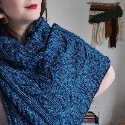 The Nona shawl is an asymmetrical triangle shawl worked in an all over ribbed cable pattern. With charted and written instructions, it's a meditative project that can be adjusted length wise to use any amount of yarn. Techniques used : Asymmetrical triangle shawl Simple increases Garter and slipped stitch edge Cabled edge Knit / Purl cables, cables with a center spine (video tutorials provided for the more complex cables) Ribbed border worked in pattern Simple stretchy bind-off Pattern includes charted and written instructions