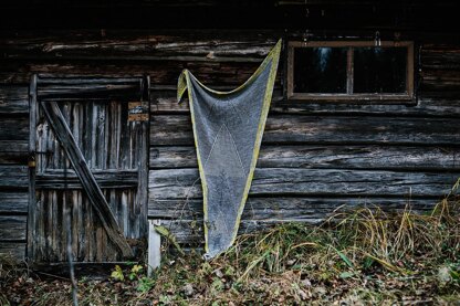 Das Dreieckstuch wird seitwärts in gestreiftem Kraus-Rechts-Muster mit überscheidenden Dreiecken in zweifarbigem Patentgestrickt gestrickt, ein Rand in Kontrastfarbe in verkürzten Reihen umgibt das Tuch, das mit einem i-cord abgeschlossen wird.