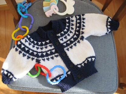 Leisure Arts Adorable Baby Sweaters Nordic Cardigan Knit ePattern- Keep those precious bundles of joy warm and cozy with this cute design. Knitted using 3 light weight yarn, 24" circular needle and US size 3, 3.25mm & 6, 4mm straight needles. Fits babies 6-24 months. 3 sizes to choose from. Largest measures approximately 25.5" around chest. Includes diagram, assembly and finishing instructions. Intermediate skill level. Originally published in Adorable Baby Sweaters 5737. 13 pages, PDF download.