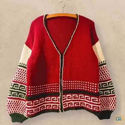Get in the festive spirit with this Christmas cardigan knitting pattern! It is inspired by nordic festive patterns in a contemporary style, creating this fun and stylish design!