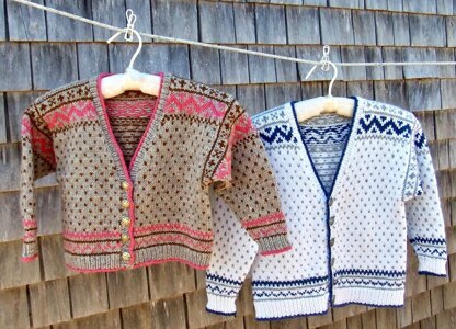 About the Design: This pattern includes 6 sizes for children from size 2 through 12, in traditional and non-traditional colorways, with a few alternate colorway charts. It is knit bottom up in one piece to the armholes. Once the v-neck fronts and the back are knit and joined, sleeve stitches are knit up and worked down to the cuffs. The button band is then knit up around the front edge. The only seams are at the shoulders, but even this can be avoided if you wish, by working a 3-needle BO!