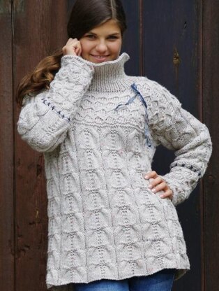 Work the sweater with 2 strands of yarn-one in Trekking Tweed 6-ply, the other in Savanna. If you like the sweater a bit flattered, stretch it at the edge with steamy iron(with a wet cloth). This sweater is one of some few designs that became my own-love it!!!