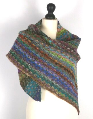A simple slip stitch patterns knits up quickly into this colourful cosy shawl.