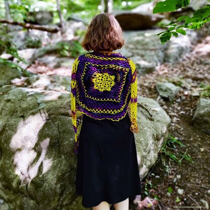 Worked from the center out, this striped wrap draws inspiration from the aurora borealis.