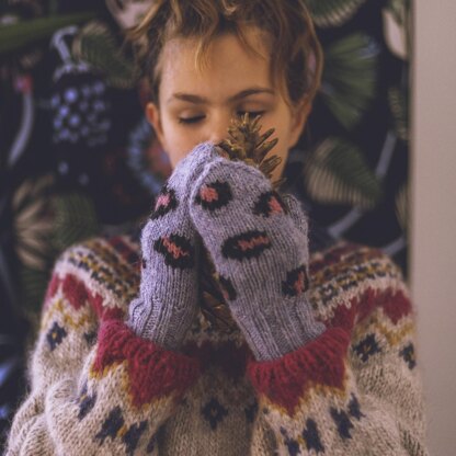 This is a basic norwegian mittens pattern, calculated for all hand sizes from toddler to adults, that may be used as a starting point for colorwork or any other stitch variation. The Leo print motif is embroidered on the back-of-hand side, after finishing the mittens, to avoid knitting on the palm side, as I found DK yarn too thick.