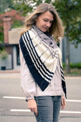 Colorblocks, stripes and vertical dropped stitches - it’s Not Quite Plaid, but looks vaguely tartan. An asymmetric bias shape and an atypical approach to creating a stitch pattern result in a fabric on which to combine colors for a nontraditional and modern shawl that is infinitely customizable. Choose colors and yarns that speak to you from your stash for your own perfect (not quite) plaid.