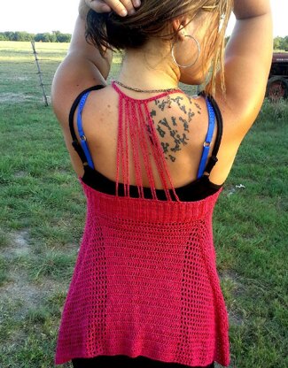 Once again, if you can make a granny square,you can make this top! I used size 5 acrylic thread and a G hook. While the hook size seems rather large it works wonderfully with this slinky thread. If you cringe at the thought of acrylic thread try to open your mind a bit! This is a fabulous, light thread with a wonderful sheen that works up with a great drape to it. Think it like the "simply soft" of crochet thread. This top is worked from the top down starting with ribbing that you sew the ends together into a circle. Then you work into the row ends for the skirt. Its an easy no-nonsense pattern that you can pick up really easily. Crochet doesn't have to be complicated to be beautiful! If you choose a different yarn, be sure to check gauge and make sure it has a good drape to the fabric or else it may be bulky.