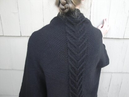 A cozy shrug worked in reverse stockinette to make the back cable detail pop! I love how the cable pops along the spine, adding a great detail to an otherwise simple piece.