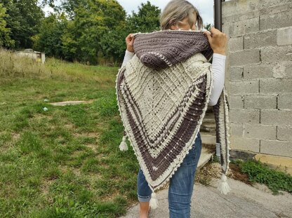 This hooded tringle warm and cozy shawl is perfect for fall, rainy days and chilly evenings, but irreplaceable during those snowy, winter days.