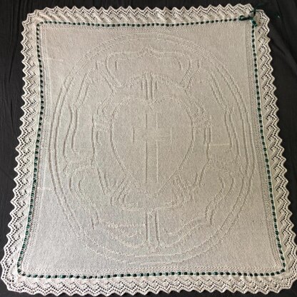 Dette smukke baby tæppe med sit spændende mønster vil være et smukt tæppe til enhver baby, tæppet fungerer som et traditionelt tæppe og er med en blonderkant.