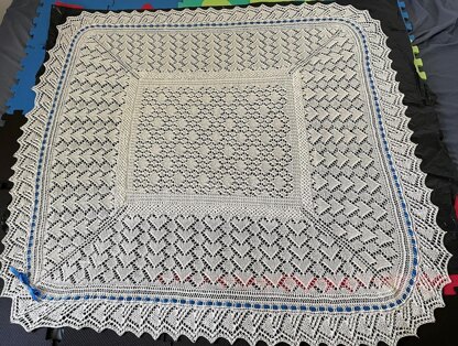 This beautiful baby blanket with its intriguing lace pattern will make a gorgeous wrap for any baby. The blanket is worked is worked like a traditional Shetland shawl and is finished off with a lace edging.
