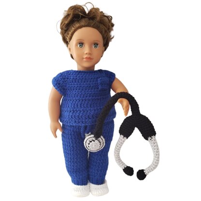 Grab your crochet hook and create a gorgeous nurse/healthcare worker uniform for your 18 inch doll. The finished scrubs will fit most 18 inch dolls such as American Girl, Our Generation, Journey Girl, etc.