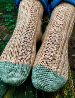 This sock design was inspired by the Beatrix Potter character, Squirrel Nutkin.