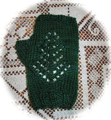 Designed as a companion piece to the "O Tannenbaum!" Christmas Wrap shawl, these Christmas mitts are a quick knit -- with or without the "Christmas lights" beads. They work up quickly and easily, and are a nice finishing touch to the Christmas shawl.