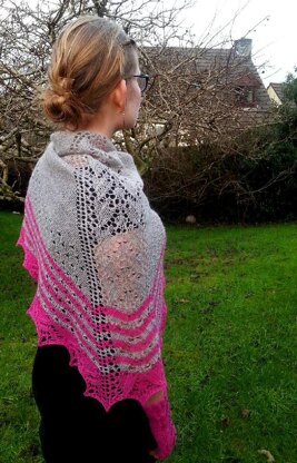 Version 2:Navia Duo (4ply; 100% Wool; 180m/196yds per 50g) x 2 balls each of colour 22 Light Grey (C1) and 215 Pink (C2) Debbie Abrahams Seed Beads, size 6, colour 754 Night Sky x 142 beads (1 bag) Shawl: 4mm (UK6/US8) circula
