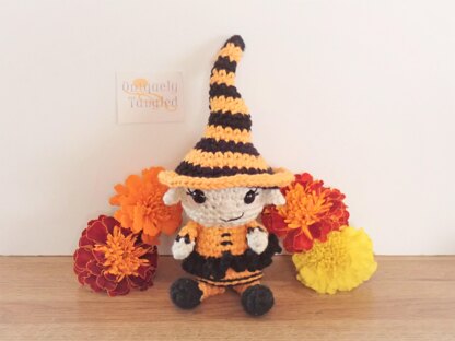October is 5½“ tall with hat. (When using a C hook (2.75mm) and worsted yarn) You can use any size yarn and hook to change the size (I recommend using a hook one size smaller than suggested on the yarn label)