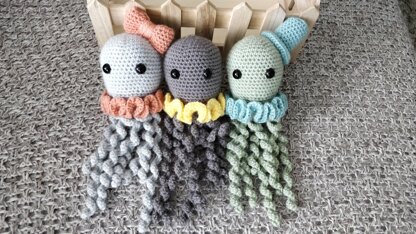 With a total length of about 26 cm, this cute Octopus is the perfect gift for both baby boys or baby girls. The pattern for the hat and the bow are also included. You can play around with different colour yarns and create your own Octopus :) Have fun!
