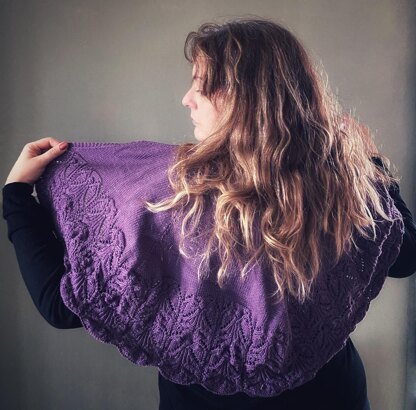 Give your shoulders a knitted hug with this sensational shaped shawl. It has pretty eyelets, a lovely textured effect, and curves in all the right places so it stays put when worn. Unlike most shawl patterns, this one is worked from the lower edge, decreasing down to the finish in the center of the neck - this means you get the trickiest bit out of the way first! Don't forget to count your stitches carefully after every row to make sure you are on track. - LK Mag.