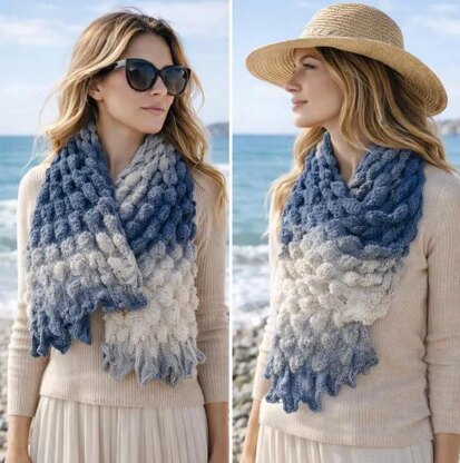 Offing is a simplified version of my signature spiked design. This rectangular scarf uses easy-to-follow stitches, with the spike motif formed through a repeating sequence of increases and decreases.
