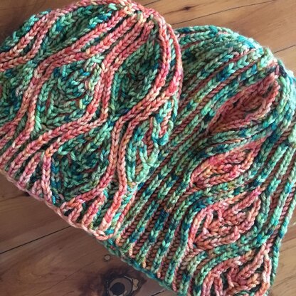 Despite the long name, two-colour syncopated brioche is not as hard as you might think! This pattern contains only basic brioche stitches, one type of brioche increases and three types of brioche decreases, all of which are explained in the notes.