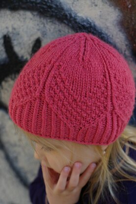 This stylish beanie is simply sweet! Textured motifs that blooms out of the twisted ribbing. A thoroughly enjoyable knit, with plenty of stitch variation.