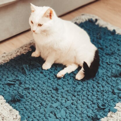 - Fabric yarn from old curtains and furry yarn for border