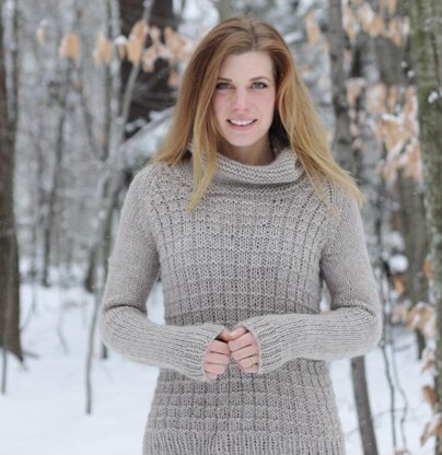 Intended to be worn with 3-5’’/7-13cm of positive ease. Sweater is worked from the bottom up in the round, then split at the sleeves and worked flat for the upper body. Sleeves are seamed along raglan seams. Cowl is picked up and knit.