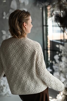 “Old town’s story” Pullover is worked seamlessly from the neck down. First, the Back Yoke is worked, the stitches for the Fronts are picked up along the shoulder line and the two halves of the Front worked, then the round neckline is shaped, and the Fronts are joined. Back and Front are joined after armhole shaping has been completed, then the Body of the sweater is worked in one piece in the round to the desired overall length. Then, the sleeves are worked from the armhole down, a subtle sleeve cap is added through short row shaping.