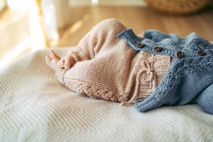 Die Ole Bukser ist eine schnellgestrickte Hose mit einem einfachen Ajourmusterstreifen an den Außenbeinen. Sie hat ein Langes Bauchbündchen, damit das kleine Bäuchlein in den Babygrößen immer schön warm gehalten wird. In den größeren Größen kann es dann umgeklappt oder ein Gummiband eingenäht werden. Durch das Umschlagbündchen an den Knöcheln wächst die Ole Bukser recht lange mit.