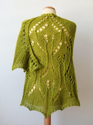 One size only: One size: Wingspan of 187 cm (73 ½ inches) and a depth of 80 cm (31 ½ inches)- measured after blocking. Adjust the sizing by using a different weight yarn and/or working a different number of repeats of the body pattern or the border.