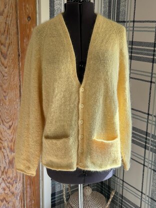 This cardigan is knitted from the top down beginning in back of the neck with temporary cast on, and then knitted down with raglan and v-neck shaping.