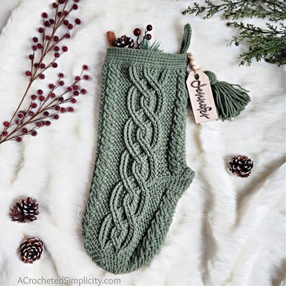 The Olivette Cabled Christmas Stocking is a festive and elegant holiday decoration, showcasing intricate crochet cable patterns that evoke a cozy, timeless charm. This stocking combines classic design with modern sophistication, making it the perfect addition to your mantle. Its generous size is ideal for holding thoughtful gifts and treats, adding warmth and tradition to your Christmas celebrations.