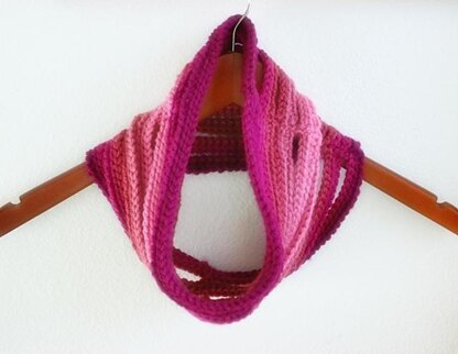 Cowls are a perfect "stay where you put them" accessory! As a lover of all things colorful, I decided to play with the same color family in various shades to create the ombre look of this cowl. The string effect makes it lightweight and airy while still keeping you cozy in style.