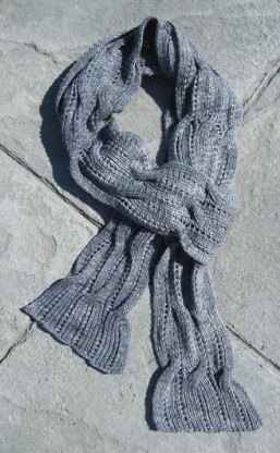 From pattern: The Onda scarf and wrap use a reversible lace cable pattern; while both sides are not identical, they are nearly so. In addition, the columns of faggoting allow the solid areas of fabric to stack neatly, creating a layered effect even when there is only one layer. So when you grab the scarf as you are rushing out the door, just carelessly loop it once or twice around your neck—whatever side ends up facing out will look great!