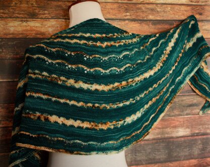 A playful 2-color shawl, Ondulado uses slipped stitches and a modified feather-and-fan stitch pattern to create complementary undulating designs over a crescent shape. Pair a solid color with that skein of variegated sock yarn in your stash that you’re just not sure what to do with and watch it come to life! Wear it as a scarf now when there’s a chill in the air, and draped around your shoulders as a light layer in warmer weather.