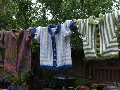 Although this jacket goes up to three years, a larger size could be achieved by lengthening the sleeves on the 2-3 years. This would make a “cropped” jacket for an older child, as the body has quite a generous width.