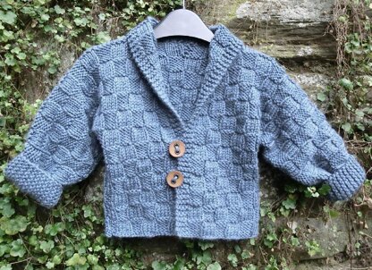 This is the knitting pattern for a warm snuggly baby jacket worked in one piece.