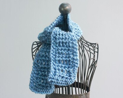 Knit a scarf with one skein of bulky yarn. This is an easy pattern, suitable even for a beginning knitter. It uses bulky yarn and large needles so it works up quickly. Great for last minute gifts.