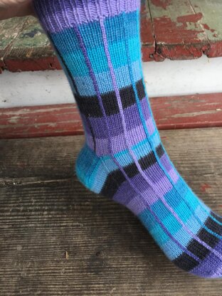 The One-Skein Wonder uses a single self-striping colorway to create a unique pair of socks with both horizontal AND vertical lines! Vertical stranding creates vertical stripes without floats or intarsia.