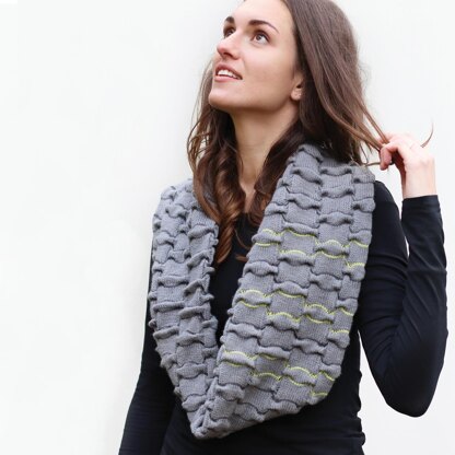 Ono is a looped loop! It’s knit in the round, with the ends grafted together with Kitchener stitch in order to make an incredibly cosy infinity scarf.