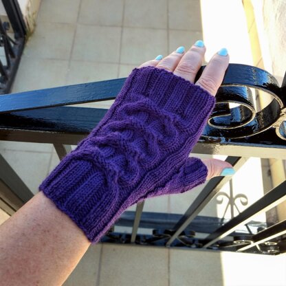 The sky’s the limit! Don’t let a gate limit you. Open a gate and go, find new ways, knowledge, creativity! The mitts are worked in rib and cable pattern which makes them stretchy and ensures a snug fit for most hands. The simple to work 4x4 cable is made interesting and unusual by adding elongated stitches and strategically placed purl stitches. The cable pattern is charted and written. Separate instructions are given for the right hand, left hand and thumbs. Directions for three sizes are given. A natural fiber (merino, alpaca, lamb’s wool, etc.) yarn should be used, that will keep its shape. The sample was knit in Cascade Yarns Heritage, colourway Italian Plum, 33 g / 1.17 oz.