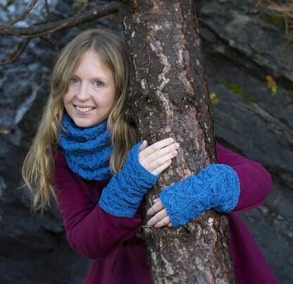 - Cowl and wristwarmers are knitted flat. Cowl is cast on using a temporary method, and then either grafted together or cast off with 3 needles.