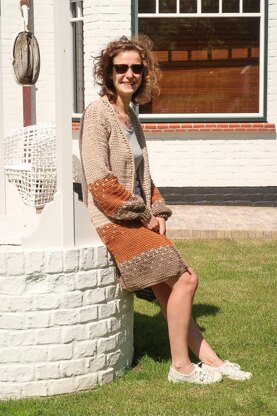 /PATTERN DETAILS • Long cardigan • Quick thanks to bulky weight 5 yarn • Sizes XS to 5XL (refer to schematic in pictures) • Beginner-friendly • Worked in panels • Techniques used / Special stitches: Full explanations are given in the pattern. • US crochet notations