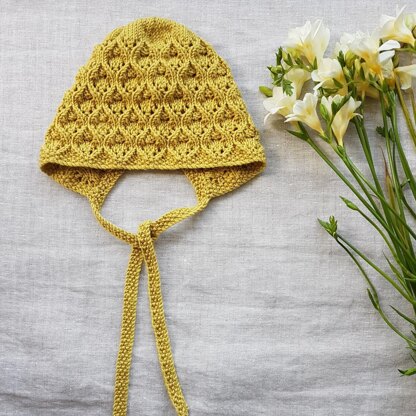 The Ophelia bonnet is knitted flat until the crown where you will then join in the round. DPN's are stated in the pattern for crown closure, however, please use your preferred method for small circumference knitting. Ties are cast on and also picked up around the edges of the bonnet.