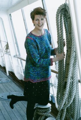 "A light, easy to wear top, flattering to many shapes. Features include shoulder details to highlight the chevrons and adjustable set-in side gussets to accommodate those of us with hips!"