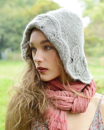 With a pretty, floppy lace edge and a fitted cap, this is a romantic and playful hat. Using a button to lift the brim from the face. One size: Circumference 33 – 90 cm, (2 balls of yarn). Knitted on 5 mm circular needles. Tension: 18 sts and 23 rows to 10 cm square over Stocking Stitch using 5 mm needles. Photographed in the colour Alpaca Dew. Knitted in Purl Alpaca Designs 100% pure alpaca Fine yarn. A substitute yarn is shown below.