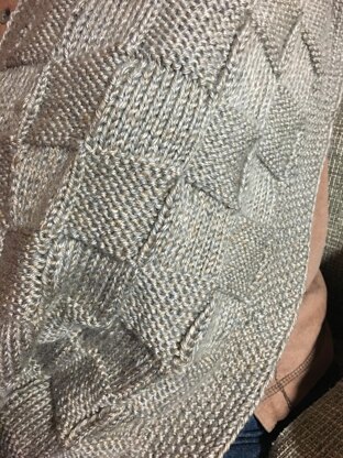 A design request from my husband who gets cold on winter evenings, but didn't want a full blanket or afghan, this generously sized wrap is perfect for throwing over your shoulders while reading a book, watching tv....or knitting of course! There are large "hidden" pockets on the inside corners for warming chilly hands.