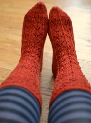Bold top-down sportweight socks boast a clingy lace rib pattern adorned with bobbles on the leg for an unusual spiky texture. The ribbing conceals calf shaping for a comfortable, non-binding fit, and the unconventional toe shaping flows smoothly out of the pattern on the instep.
